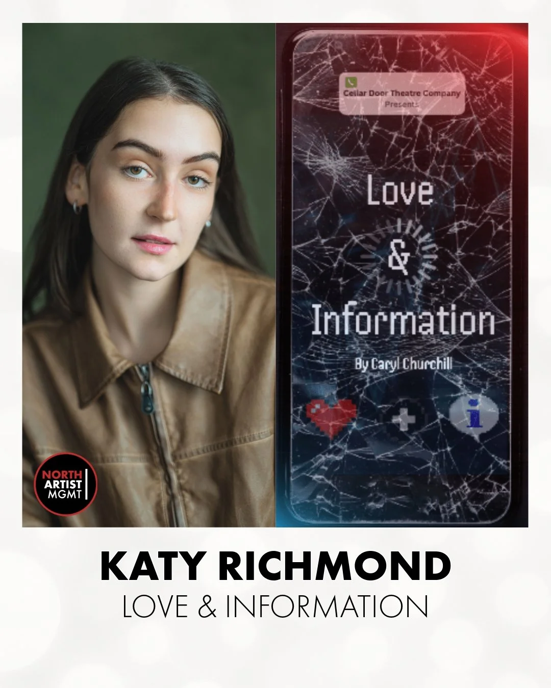View fullsize KATY RICHMOND (@katyalicee) has been cast in Cellar Door Theatre's (@cellar_door_theatre) production of Love and Information. The show can be seen at The Drayton Arms on the 28th and 29th of June 👏